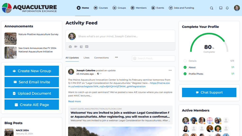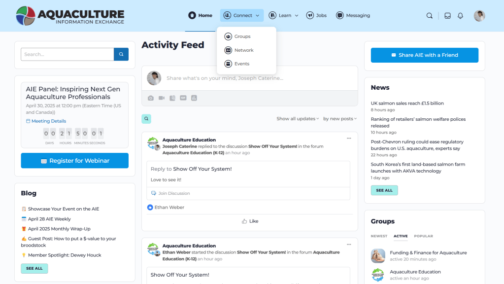 With a surge of new AIE members expected at the March 2025 Aquaculture Triennial conference, I saw an opportunity to fix these issues beforehand. My goal was to make it easier to get around the AIE and understand everything the platform had to offer.