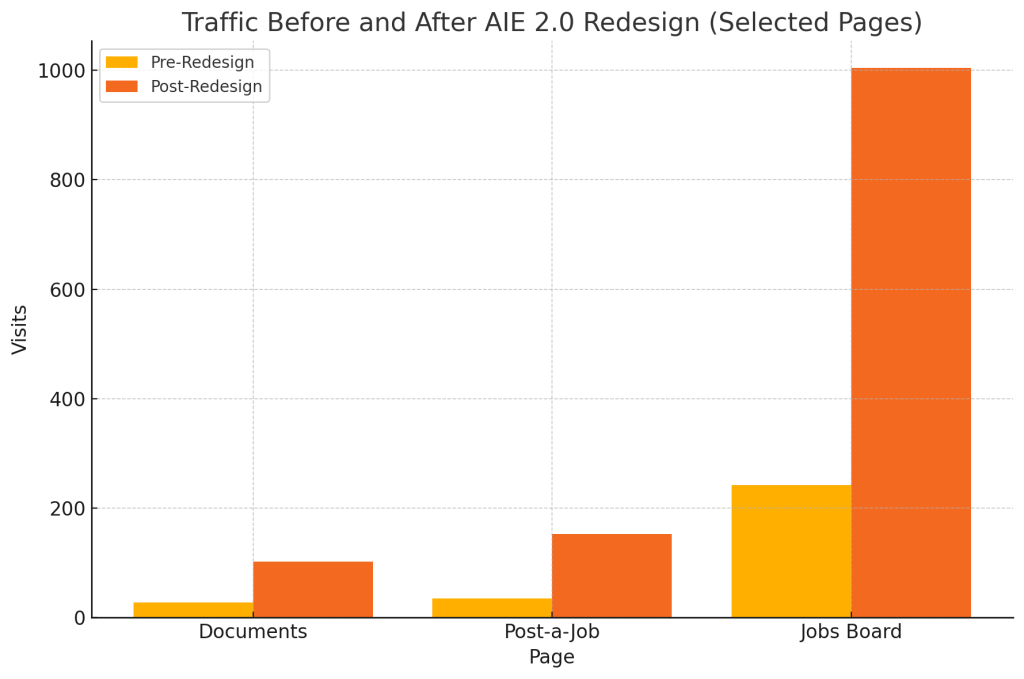 This redesign improved how users navigate the AIE and helped highlight features that had previously been overlooked. There’s still work to do—especially around features like Courses that saw a drop in traffic—but we now have a more flexible, scalable structure in place.